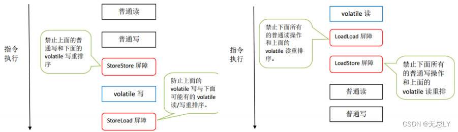 4、在每个volatile读操作的后面插入一个LoadStore屏障。