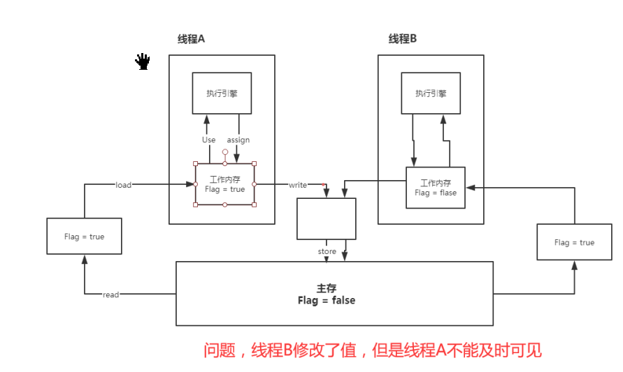store (存储):作用于主内存中的变量,它把一个从工作内存中一个变量的值传送到主内存中,