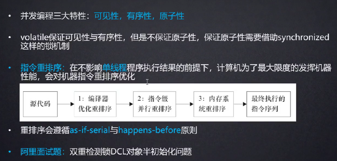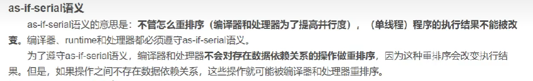 指令重排序:系统为了提高执行效率会把代码或者执行的步骤进行顺序的调整,前提是不能改变程序的执行结果。