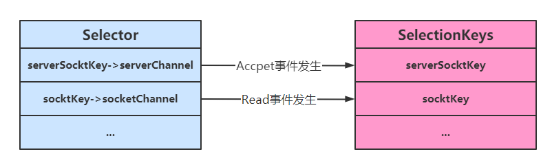 - 阻塞IO模式下,若线程因accept事件被阻塞,发生read事件后,仍需等待accept事件执行完成后,才能去处理read事件