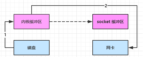 - 使用 DMA 将 内核缓冲区的数据写入网卡,不会使用 CPU