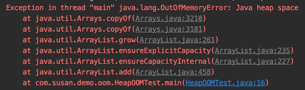 java.lang.OutOfMemoryError: Java heap space此OOM是由于JVM中heap的最大值,已经不能满足需求了。