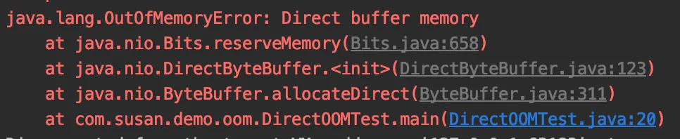 java.lang.OutOfMemoryError: Direct buffer memory例如下面这样的: