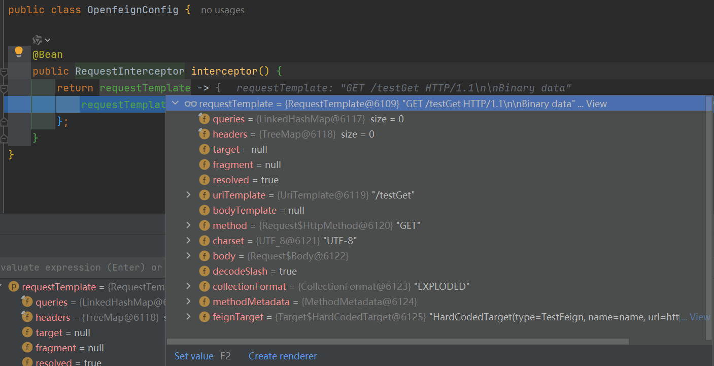 requestTemplate此时已经被创建出来了,所有可以获取到请求相关的数据。