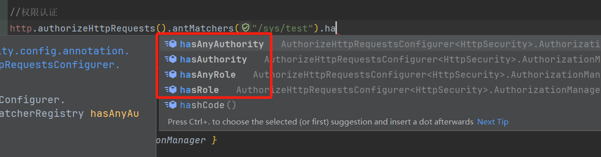 hasAnyAuthority可以即包含某权限或者角色>http.authorizeHttpRequests().antMatchers("/sys/test").hasAnyAuthority("sys:test", "ROLE_ADMIN");
