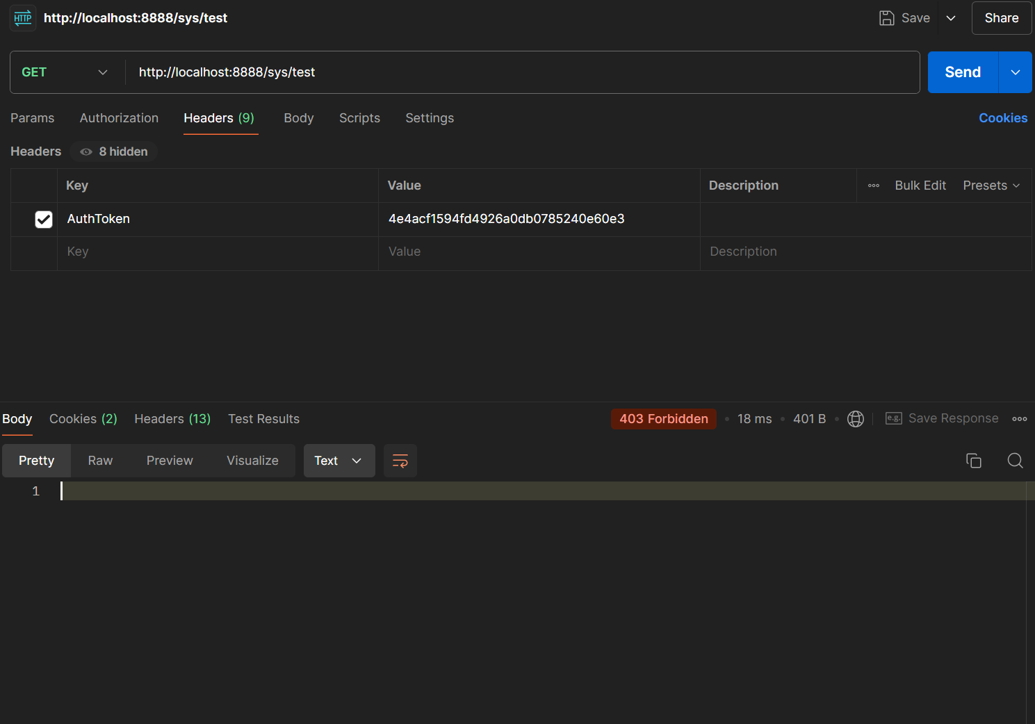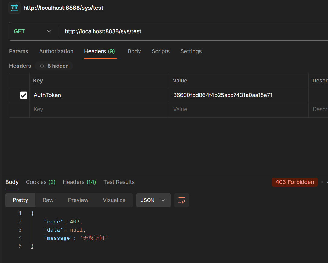 http.authorizeHttpRequests().antMatchers("/sys/test").hasAnyAuthority("sys:list", "sys:test");再次访问: