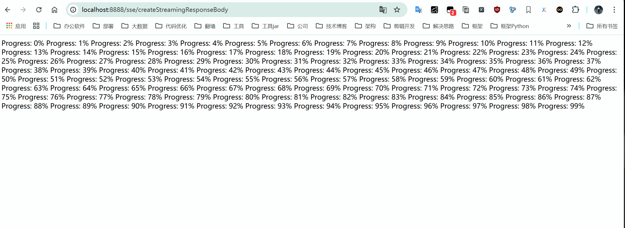 接口实现直接返回 StreamingResponseBody 对象,将数据写入输出流并刷新,调用一次flush就会向客户端写入一次数据。