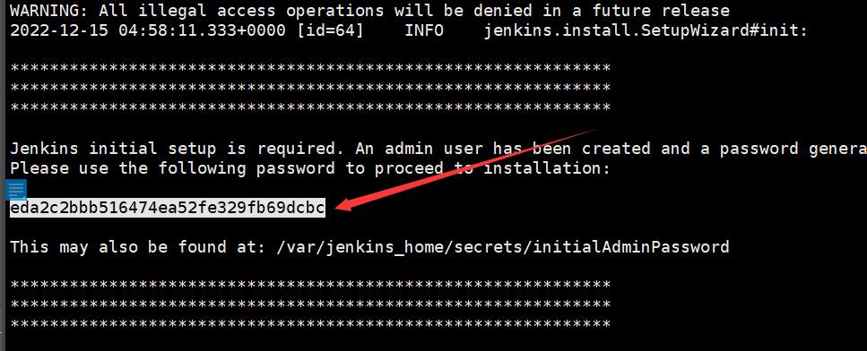 docker run --name jenkins -d -v /var/jenkins_home:/var/jenkins_home -p 8080:8080 -p 50000:50000 --restart=on-failure jenkins/jenkins3.查看登录密钥: