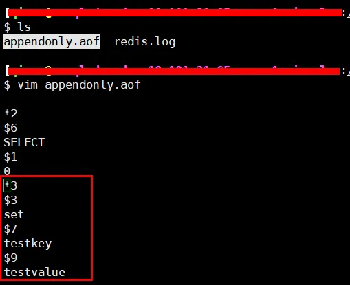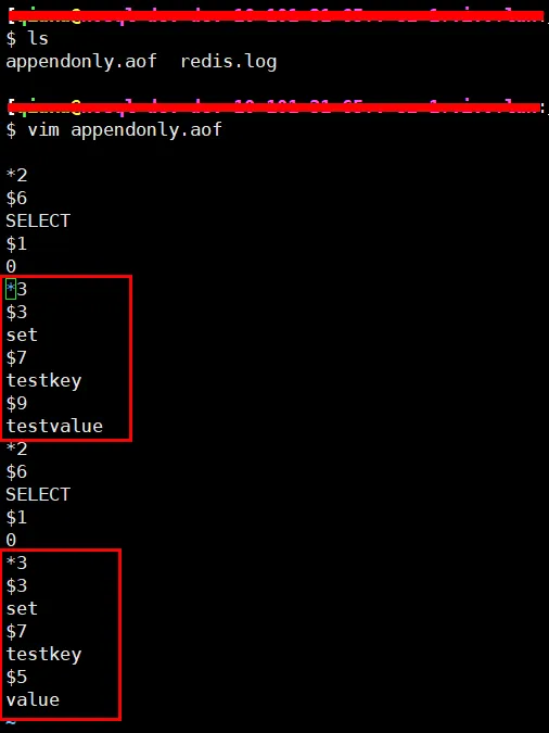 在上面我们向 AOF 文件中记录了一条 set 命令,如果此时我们对该 key 的值进行了更新,那么 AOF 文件中记录的日志是否也会随之更新呢?通过 AOF 文件我们可以看到,原先写入AOF 文件的 set 命令并没有发生改变,而是在 AOF 文件末尾追加了一条 set testkey value 命令。
