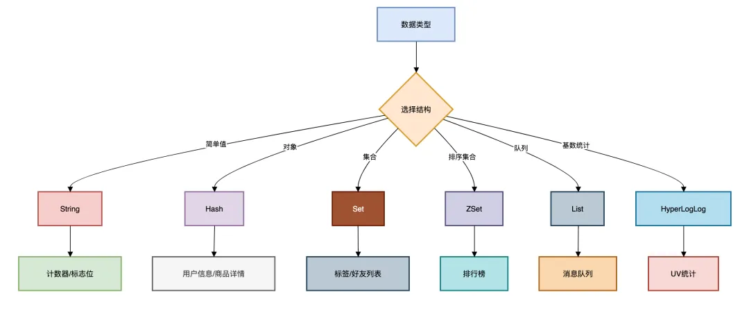 redis.opsForHash().put("user:123", "age", "25"); 数据结构选择矩阵: