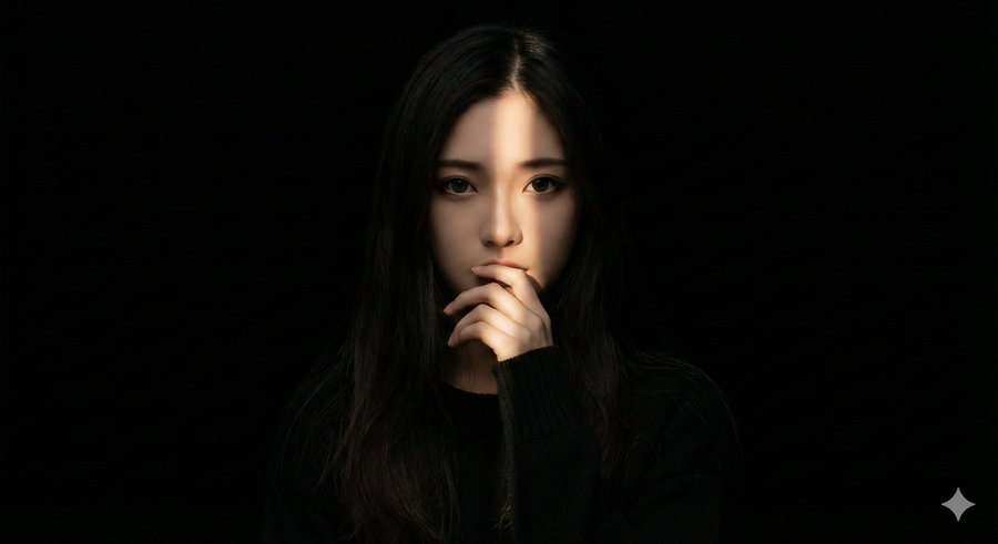[光影与摄影] 影棚级柔光照明,伦勃朗光或蝴蝶光(根据原图),自然的眼神光,阴影层次丰富,全画幅单反摄影,85mm 人像镜头,f/1.8 大光圈,景深自然柔和。