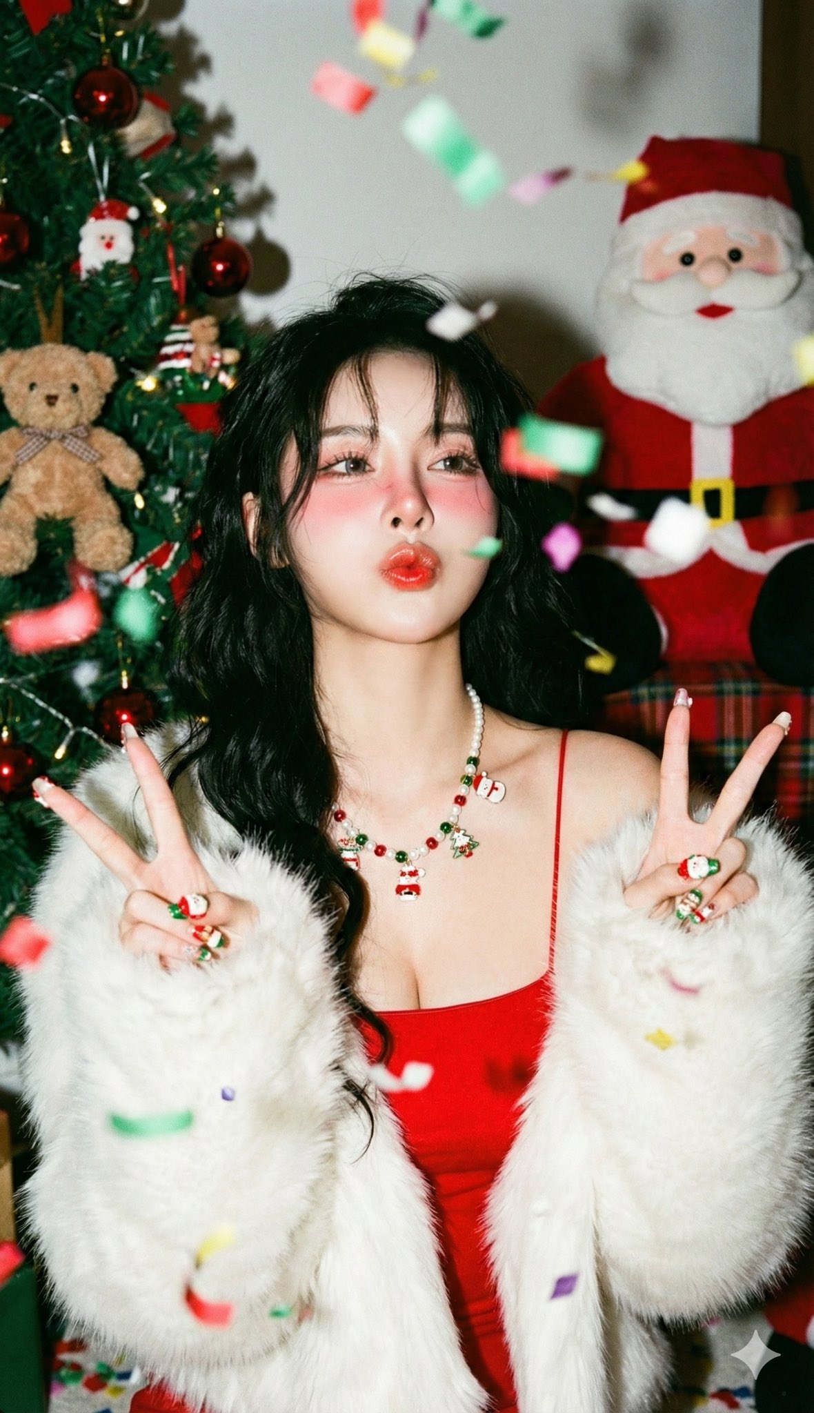 比如想要给自己的对象生成一张复古胶片风的圣诞派对美少女照片(根据参考图生图)